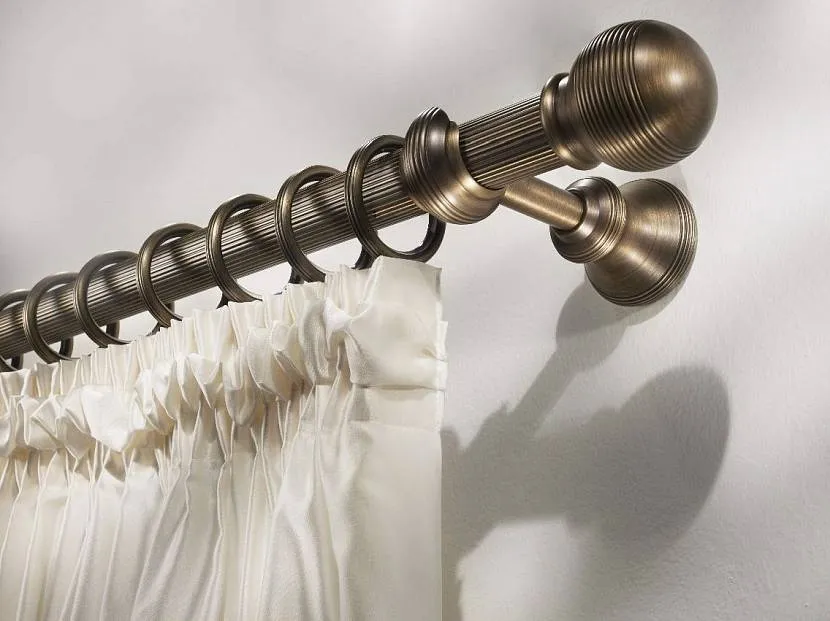 Трубчатые карнизы бывают одноуровневые и двухуровневые, по краям декорируются наконечниками и изготавливаются под конкретный размер.