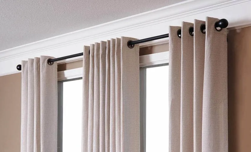 Важную роль играет не только материал, но и внешний вид карниза, а также прочность крепления штор к нему.