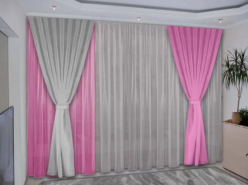 Слой, расположенный ближе к окну, защищает от солнечного света, второй слой – акцентирует внимание на дизайне комнаты