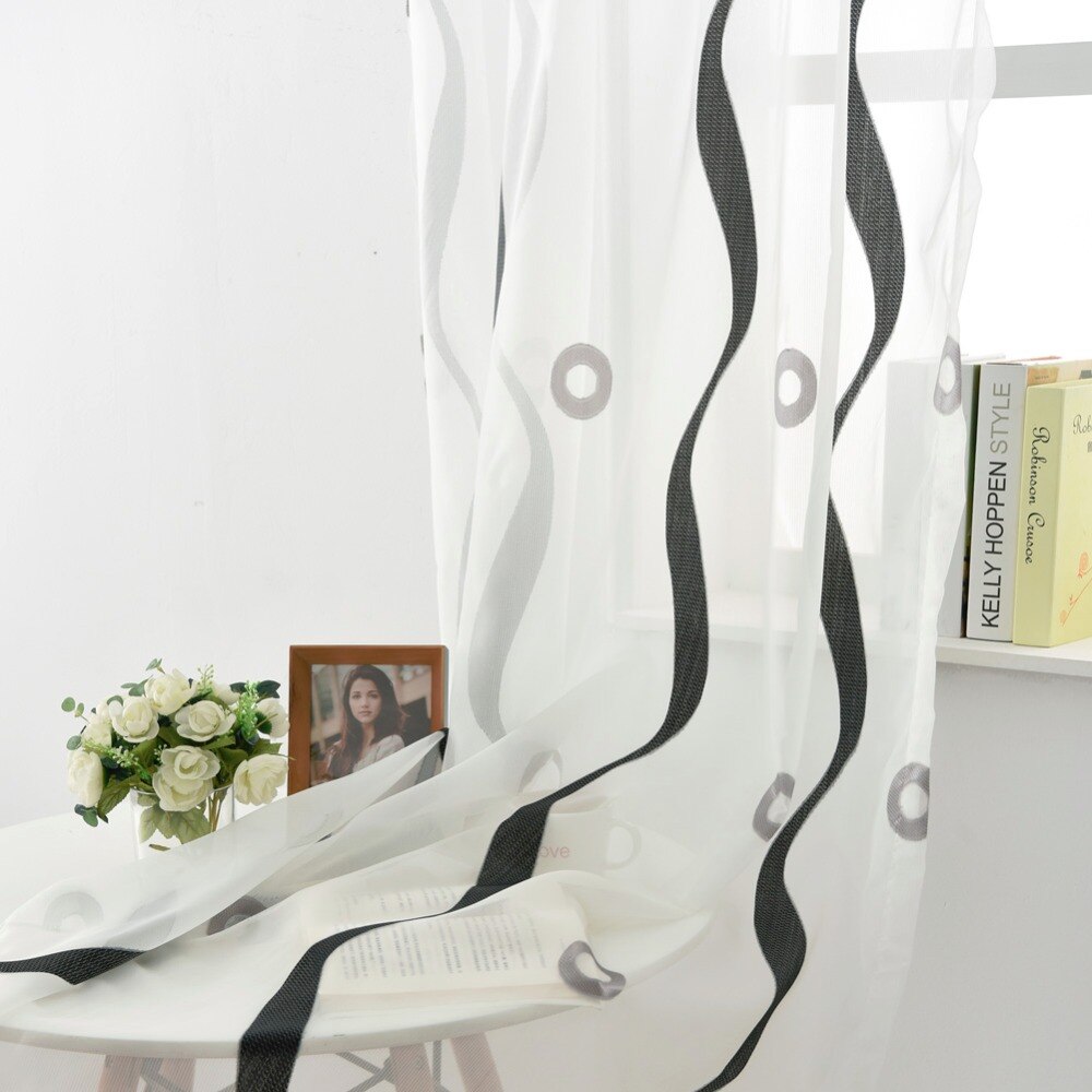 Рисунок с вышивкой привносит в интерьер утонченность и романтичность. Такие воздушные занавески прекрасно дополнят образ гостиной, спальни или детской.