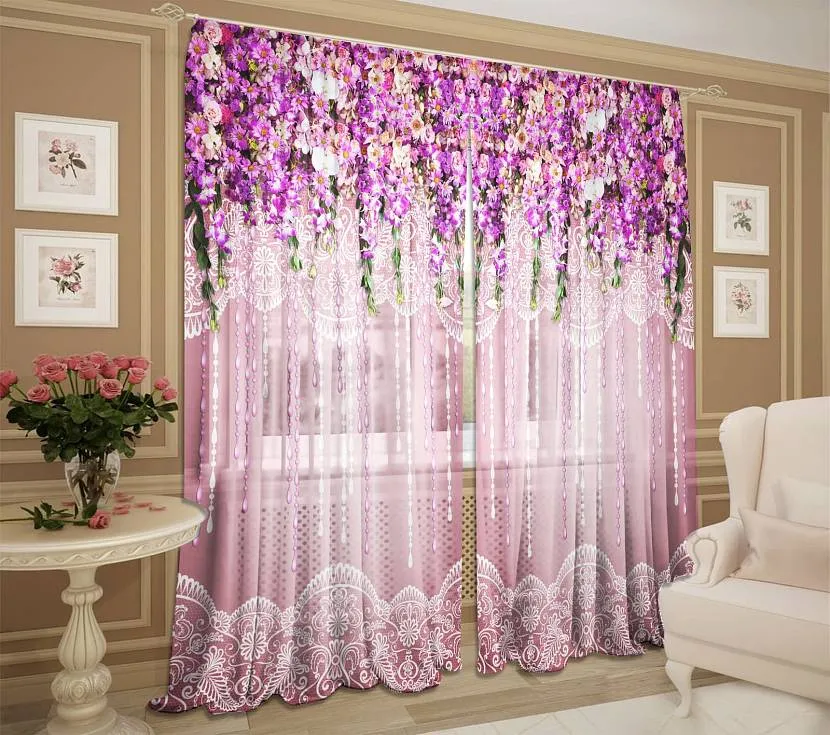 Шторы из вуали имеют разнообразные рисунки от царских узоров, природных и геометрических орнаментов, до еле уловимых мелких принтов. Каждый из них находит свое место в интерьерах.