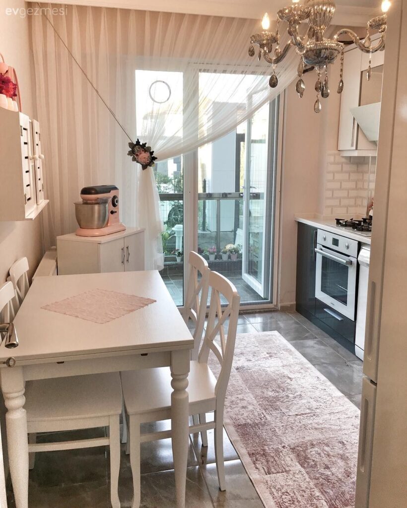 Исключение ― небольшая кухня, совмещенная с балконом. В этом случае вполне допустимо оформить оконный и балконный проем длинными занавесками.