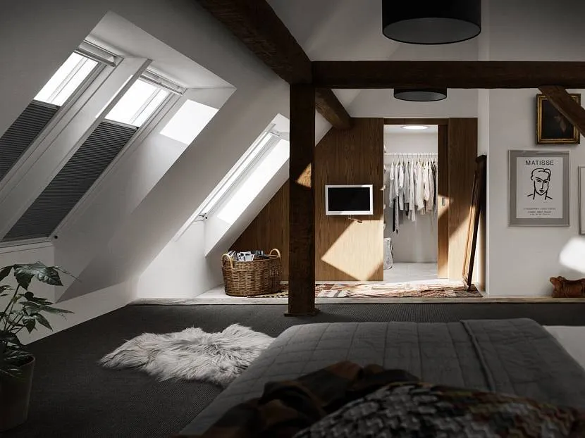Окно на мансарде можно не закрывать полностью, а подбирать нужный уровень освещения Источник roomester.ru