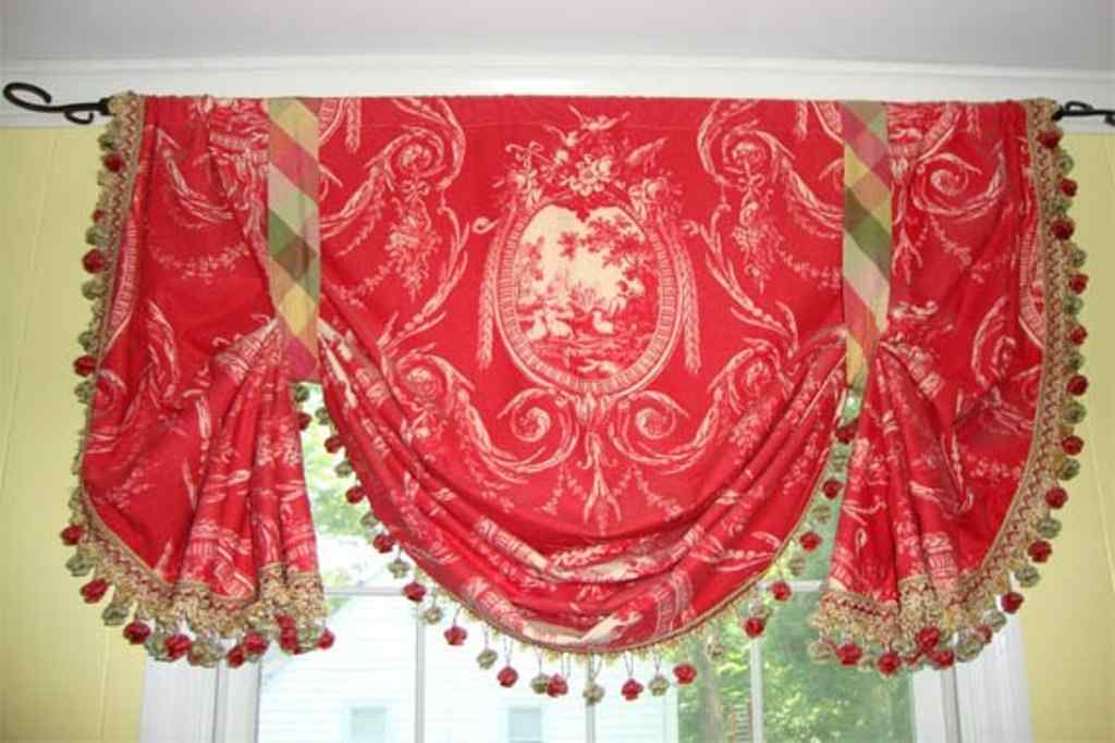 Конструкции с ламбрекенами. Представляет собой необычную оборку, располагающаяся над занавесками. Они в основном закрывают карниз, а также моделируют образное восприятие оконного пространства.