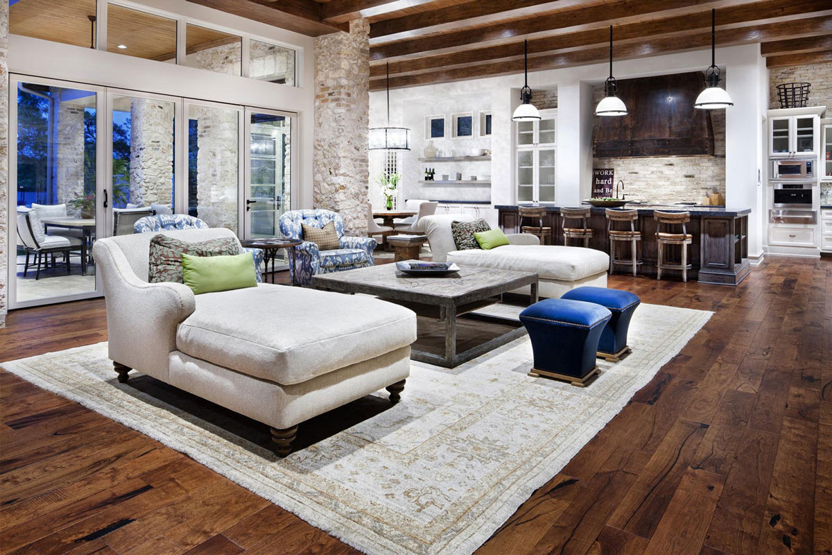 Самым распространенным способом зонирования кухни и гостиной является использование разных материалов для отделки пола, стен или потолка. Например, пол на кухне может быть покрыт удобной плиткой или ламинатом, а пол в гостиной – ковролином или паркетной доской. Стены в кухонной зоне можно оформить самыми подходящими для этого помещения материалами – плиткой, пластиковыми панелями и т.д., в то время как в гостиной вполне приемлемо использование обоев, побелки и других отделочных материалов.