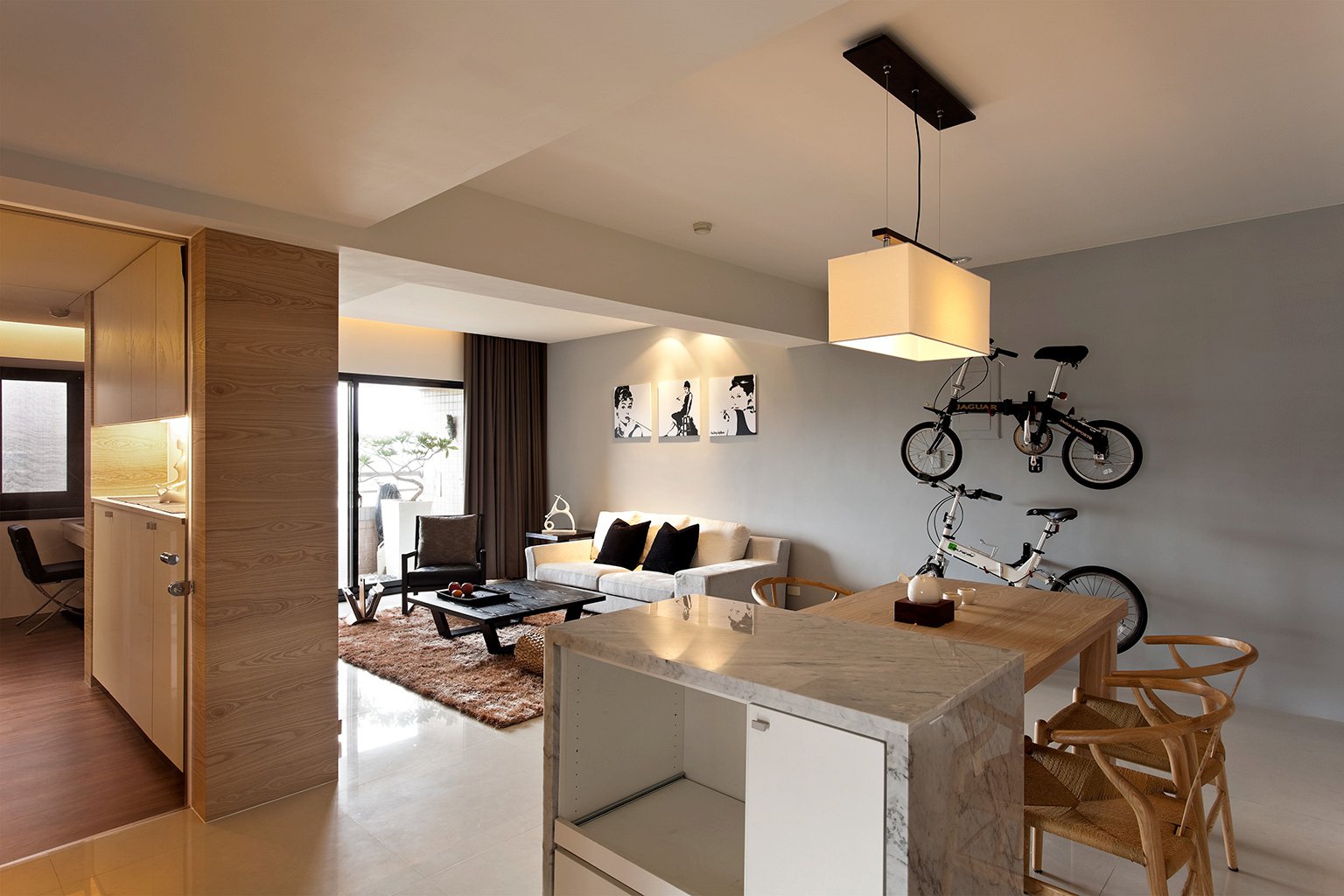 Барная стойка для зонирования совмещенной гостиной с кухней