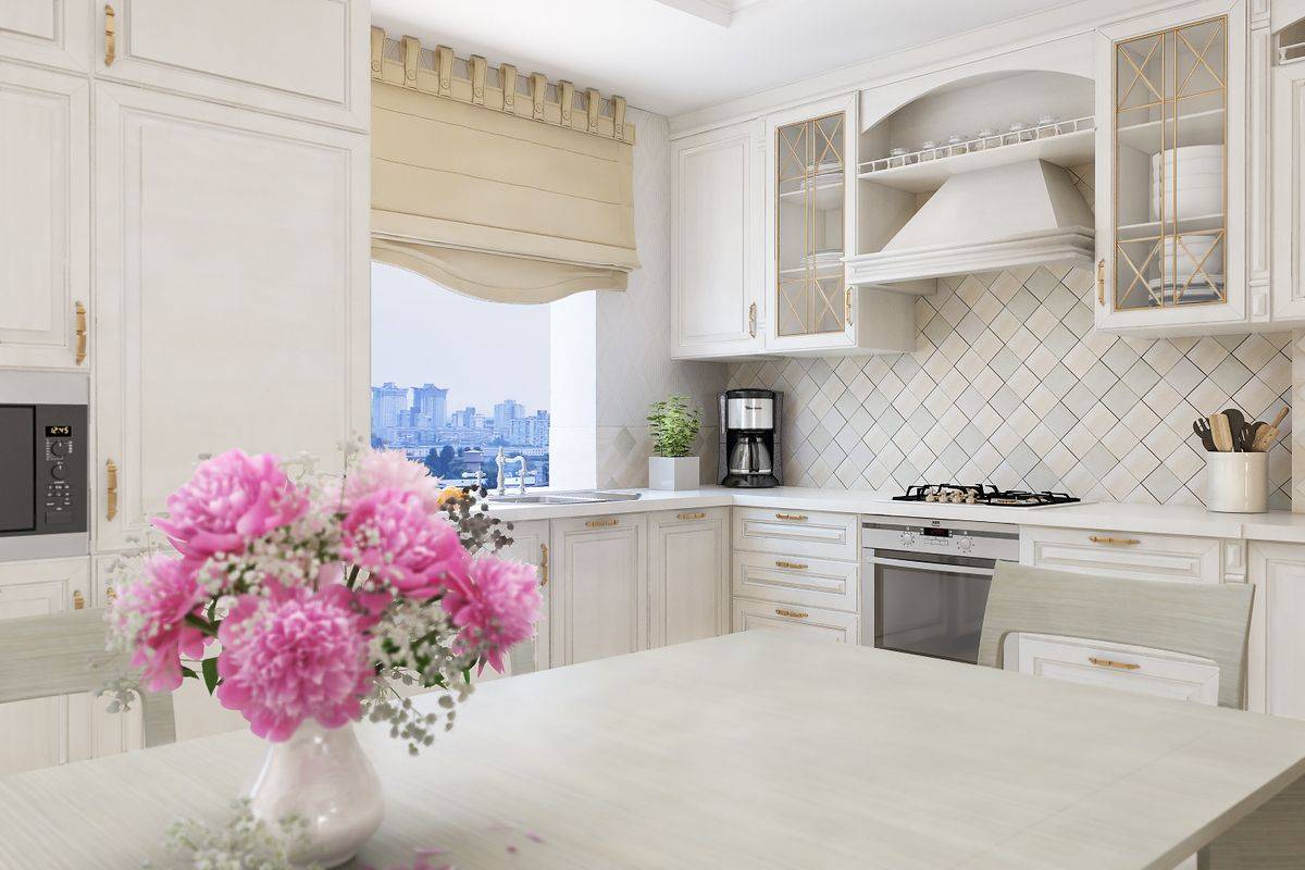 Недостаток только один — в зоне кухни белизна быстро потеряет свежесть, поэтому будьте готовы к регулярной уборке.