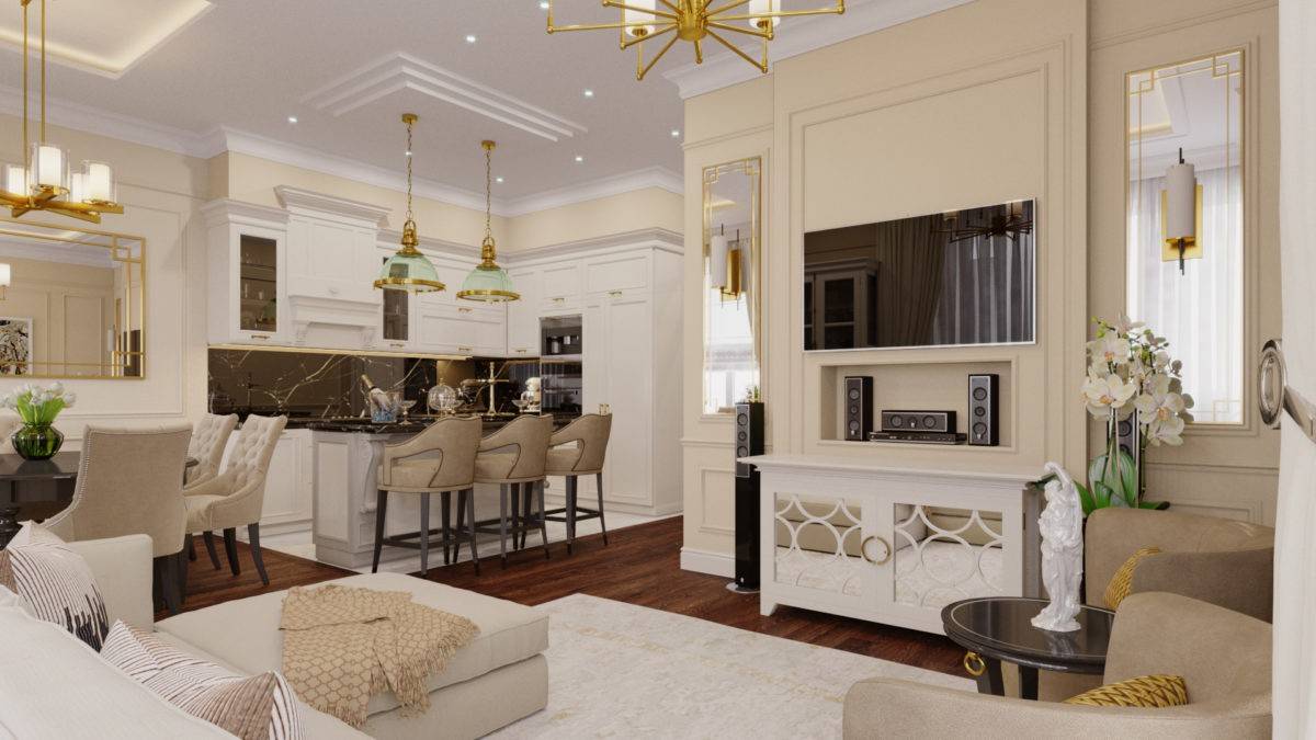 Интерьер гостиной-кухни должен быть гармонизированным для создания впечатления неделимости, единства и завершенности.