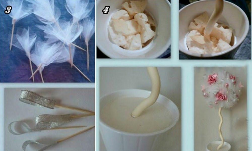 Свадебный топиарий из органзы (фото мастер-класс пошагово)