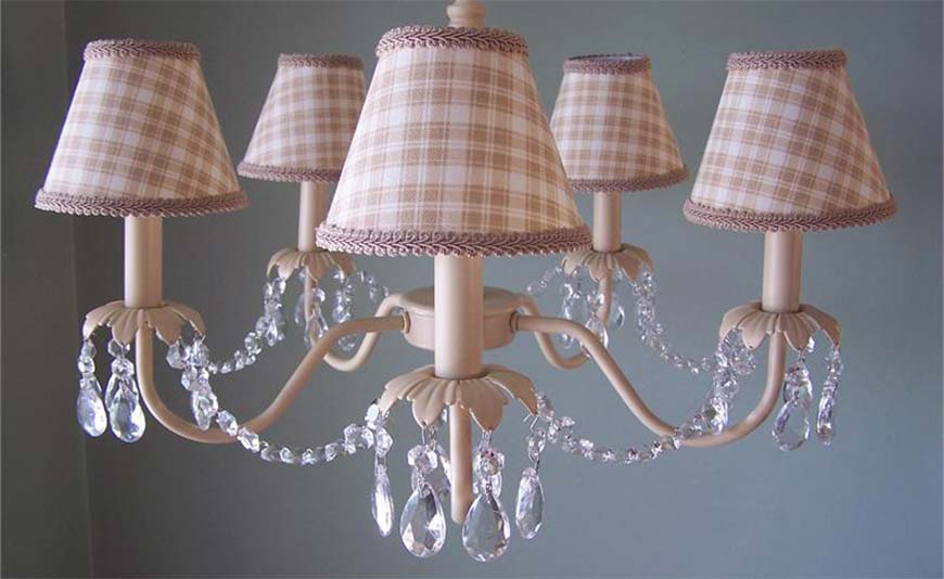 Для создания эффектного освещения в комнате, так же можно сделать люстру из ткани или бусин. В результате получится некий канделябр или плафон в стиле «шебби-шик».