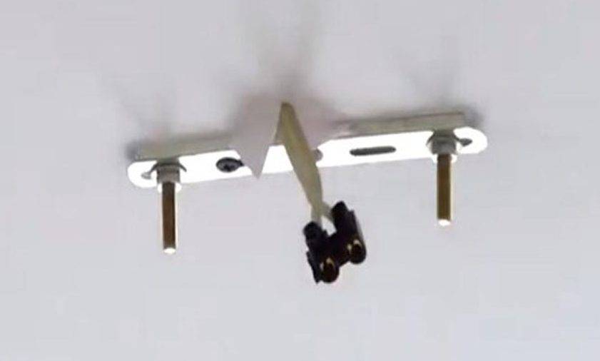 Закрепите светильник на потолке. Для этого используется как классический крюк, торчащий с потолка, так и крепежная рейка (входит в комплект большинства современных устройств). При наличии крюка от старой люстры его желательно демонтировать.