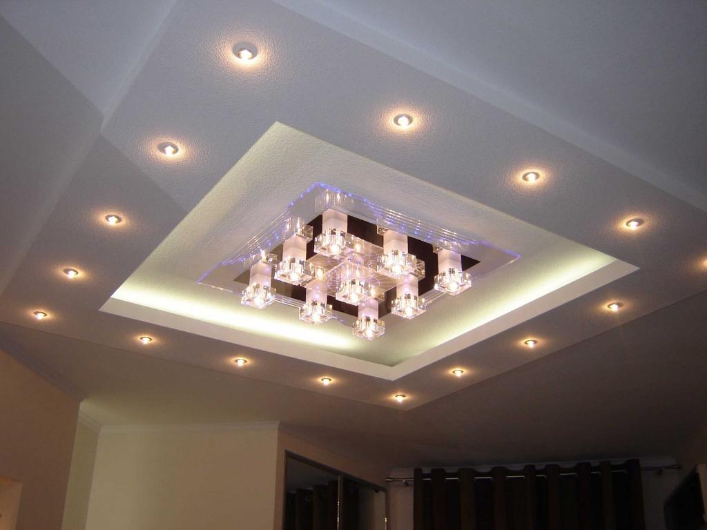 Самый распространенный вариант освещения – точечные светильники. Точечные светильники обеспечивают освещение всего помещения и, при необходимости, отдельной зоны, т.е. с помощью точечного освещения помещение можно разделить на отдельные зоны. В целом, освещение с встроенным освещением – лучший вариант.