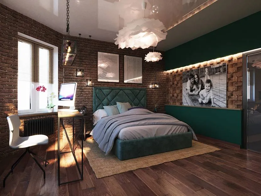 Светильники в спальне лофт.