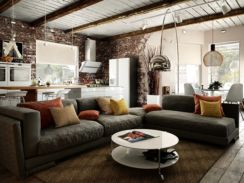 Неотъемлемой частью лофта должен стать большой удобный диван