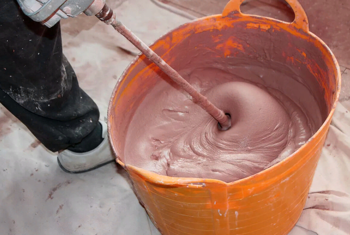 Во-первых, важно внимательно изучить прилагаемую инструкцию, ведь в ней указаны нужные пропорции. Во-вторых, нам пригодятся емкость для воды и дрель со специальной смешивающей насадкой