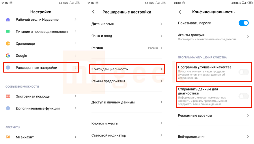 Для улучшения программного обеспечения каждый смартфон Xiaomi отправляет обезличенные статистические данные об использовании и ошибках в центр разработки для дальнейшего анализа. Эта функция периодически задействует модуль сотовой связи, что приводит к дополнительным затратам энергии.