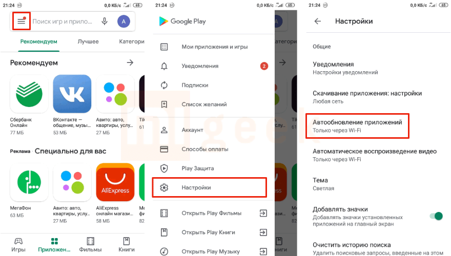 - «Автообновление приложений»;
