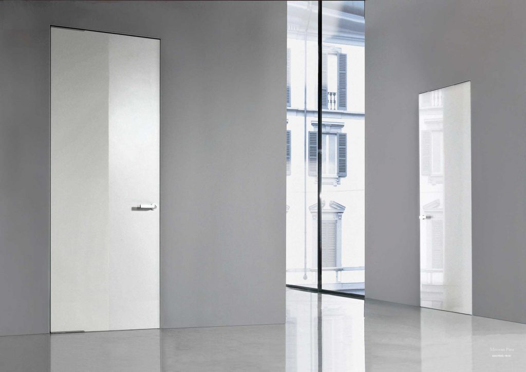 Это более праздничный вариант белых дверей. Они могут успешно устанавливаться не только дома, но и в офисах, кафе и ресторанах. Не рекомендуется их применять в спальнях, чтобы не было отражения в этой интимной комнате. Глянец делает любой предмет отражаемым. Достигается это многократным полированием поверхностей с дальнейшим покрытием лаком либо полиэстером.