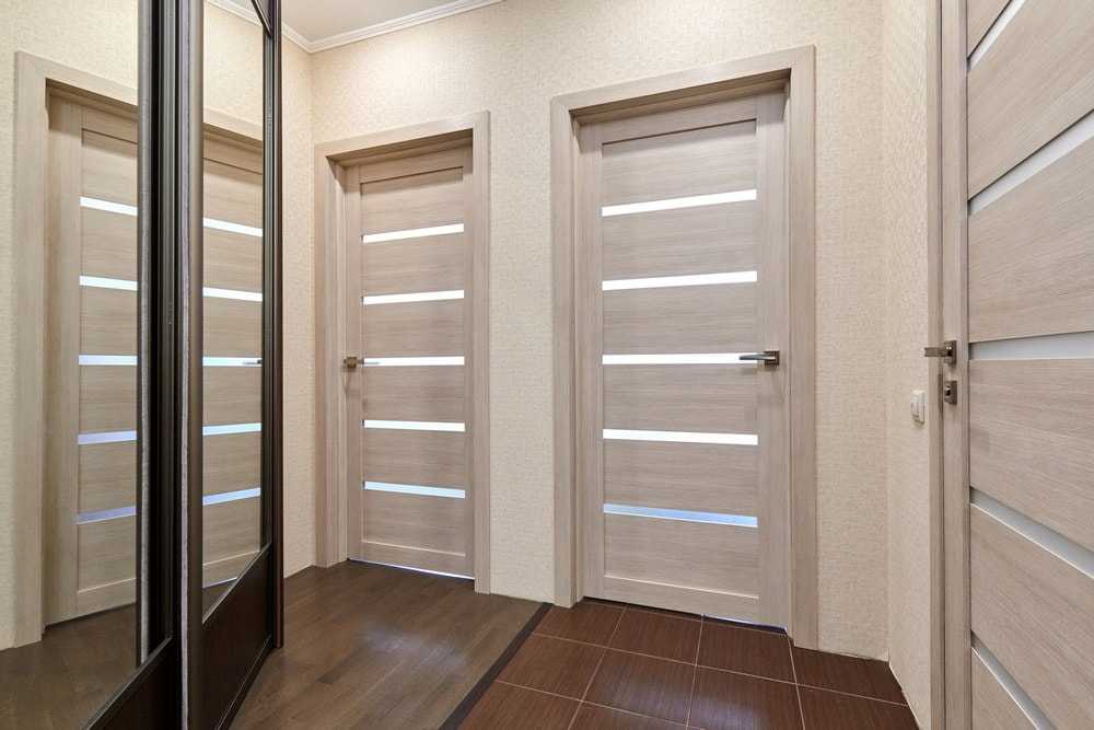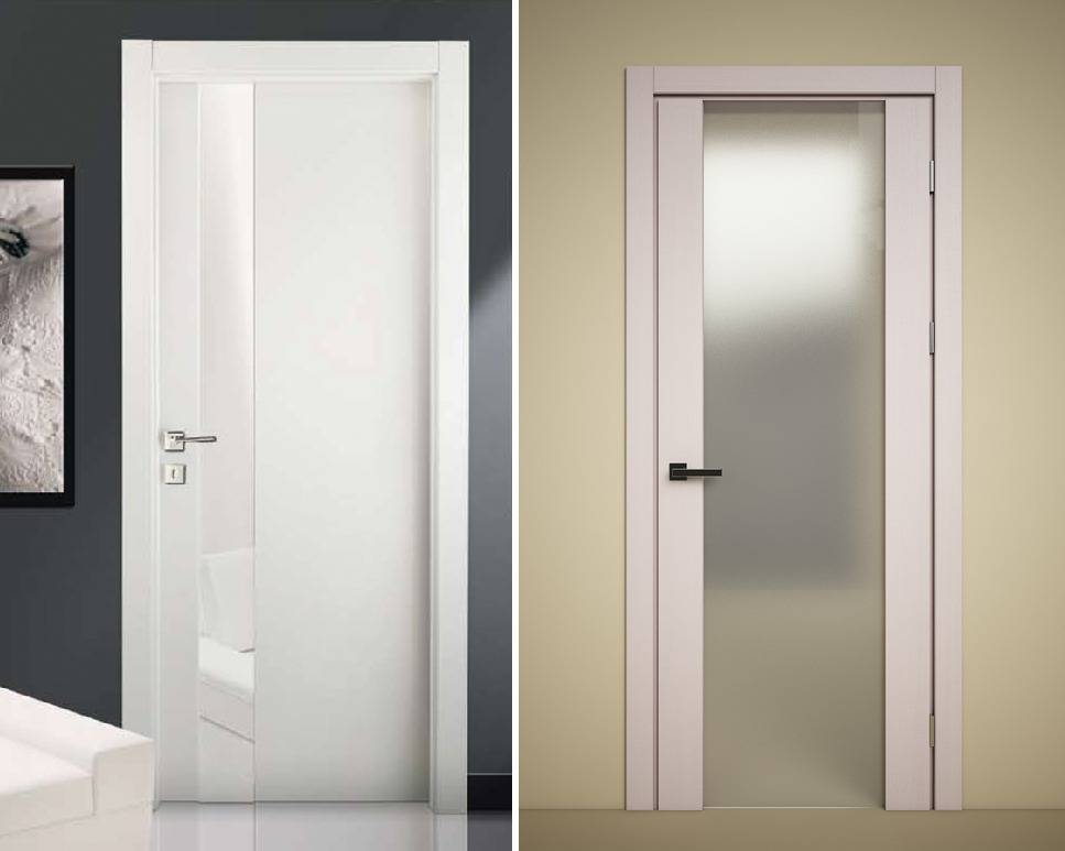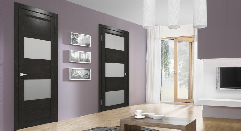 Для зрительного увеличения пространства в квартире и усиления освещения подойдут двери со стеклом, которые могут быть прозрачными, матовыми или темными в зависимости от помещения.