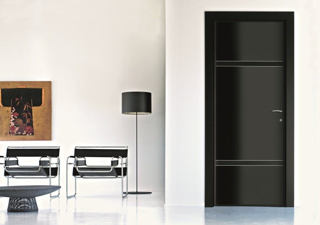 Другая альтернатива предыдущему варианту — тёмные двери, белые стены и светлый пол. Однако в этом случае обязательно наличие мебели или элементов декора того же цвета, что и двери.