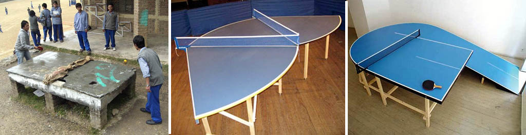 На чем только народ не играет в пинг-понг, иной раз диву даешься. Стол для игры втроем еще можно понять. Хотя, приложившись с пылу, с жару подходящей по высоте частью тела к острому углу, боковой игрок испытает ощущения поистине экстремальные. Но что делать на том столе, что справа на рис., призадумаешься. Мы не будем вдаваться в эксперименты или описывать курьезные конструкции хотя бы потому, что их очень много. Экстремальные разновидности пинг-понга давно вышли за рамки субкультуры и превратились в популярное хобби, на которое работает целая промышленность. Мы разберемся, как сделать теннисный стол для дома, дачи, на улицу. И для детей тоже. Пусть они под взрослый стол еще пешком ходят, но покидать-то хочется. Очень уж это увлекательная игра – настольный теннис.
