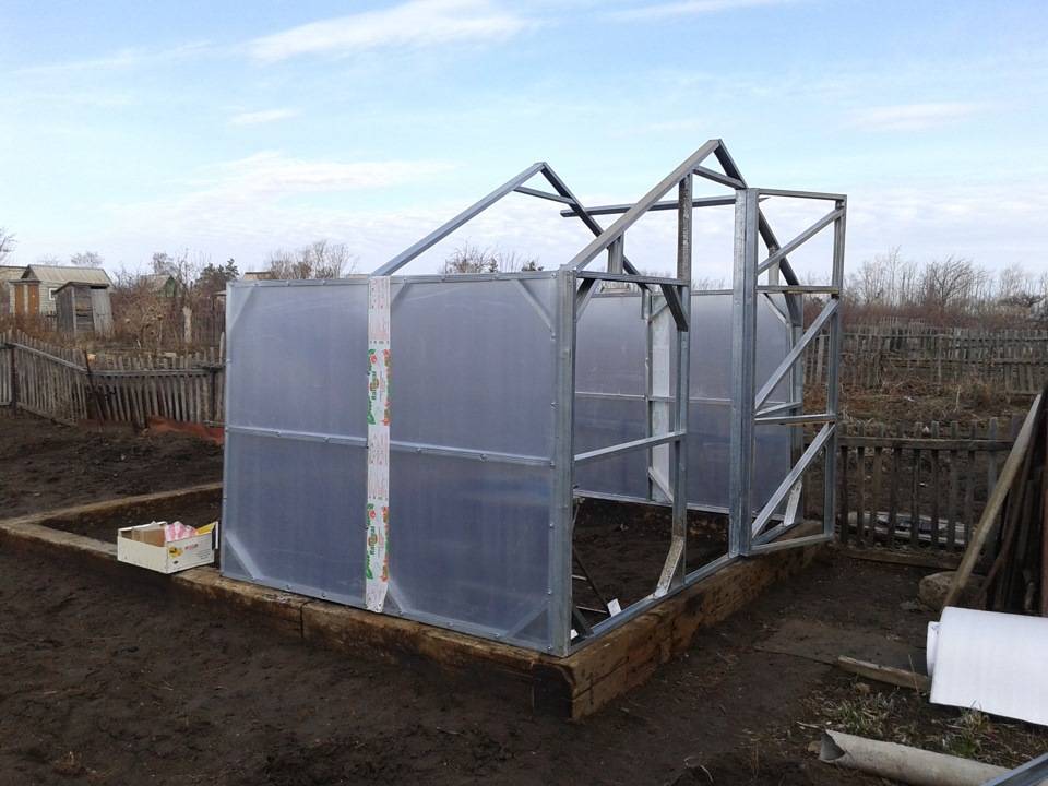 - Монтируется кровля будущего парника.