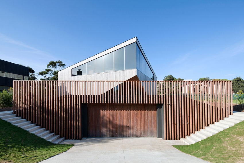 Пример стильного и практичного размещения гаража перед домом