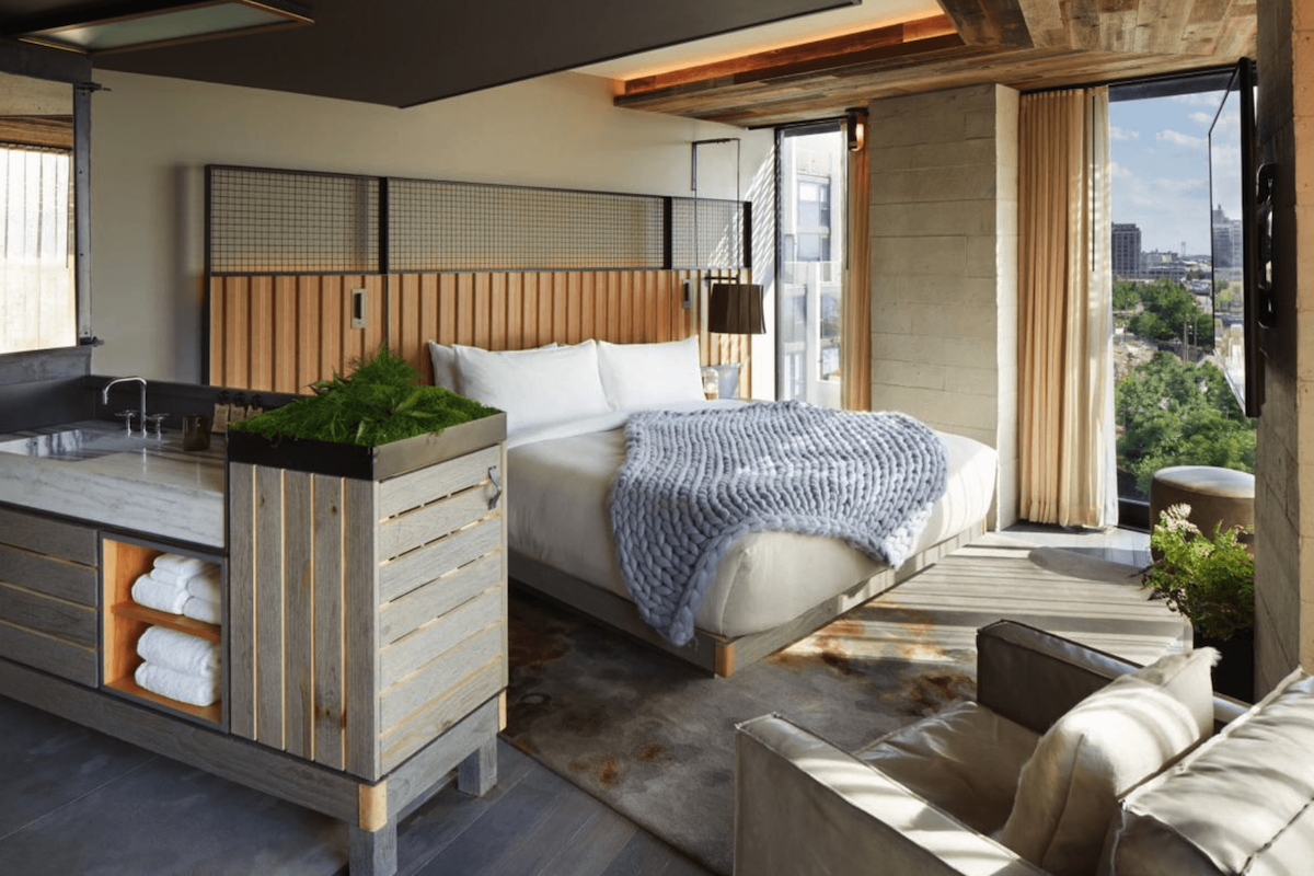 The brand’s second property in the concrete jungle of NYC, 1 Hotel Brooklyn Bridge boasts reclaimed wood furniture, a living plant wall, and floor-to-ceiling windows that provide incredible over-water views of the Downtown Manhattan skyline.
