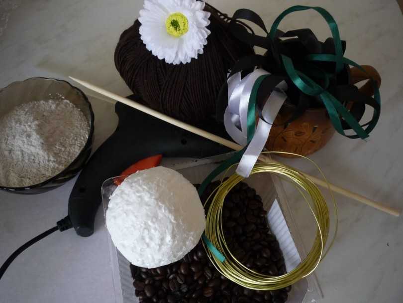 Чтобы выполнить топиарий из кофейных зёрен своими руками, нам понадобится: