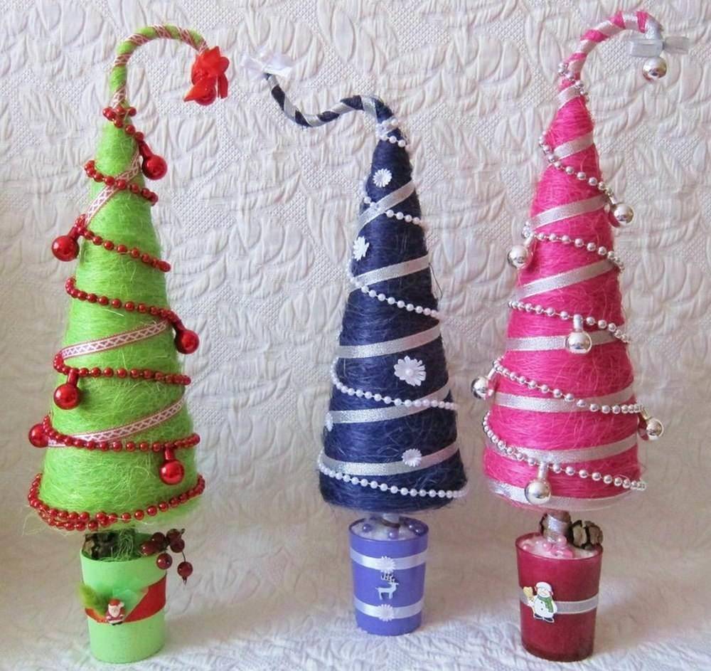 Топиарий елочка из ниток: оригинальный декор своими руками