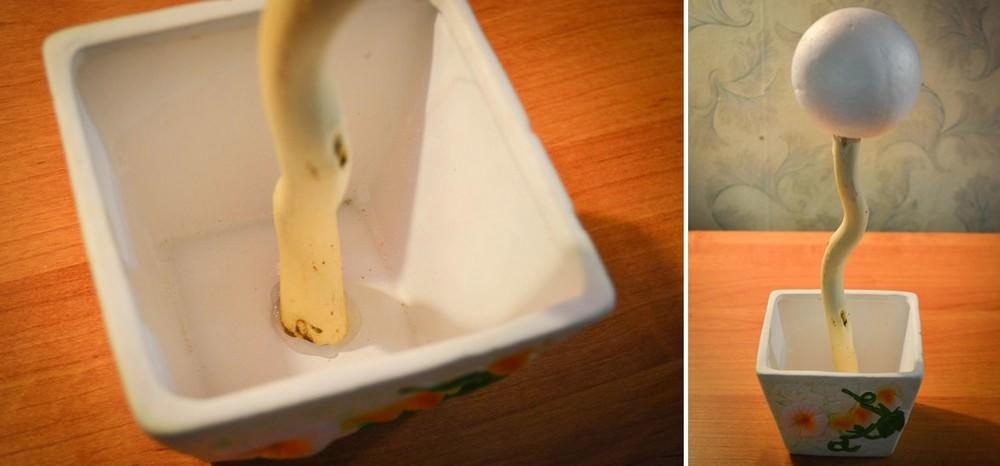 Можно интерьерный шар закрепить на стебель и закрепить в горшок и получиться прекрасный топиарий.