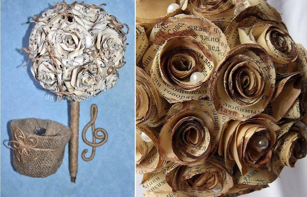 Есть несколько способов изготовления роз из нотных листов. Чаще всего вырезаются лепестки, несколько рядов разных размеров. Первый лепесток скручивается в рулончик, остальные обкручиваются вокруг рулончика. Закреплять лепестки нужно нитками у основания.