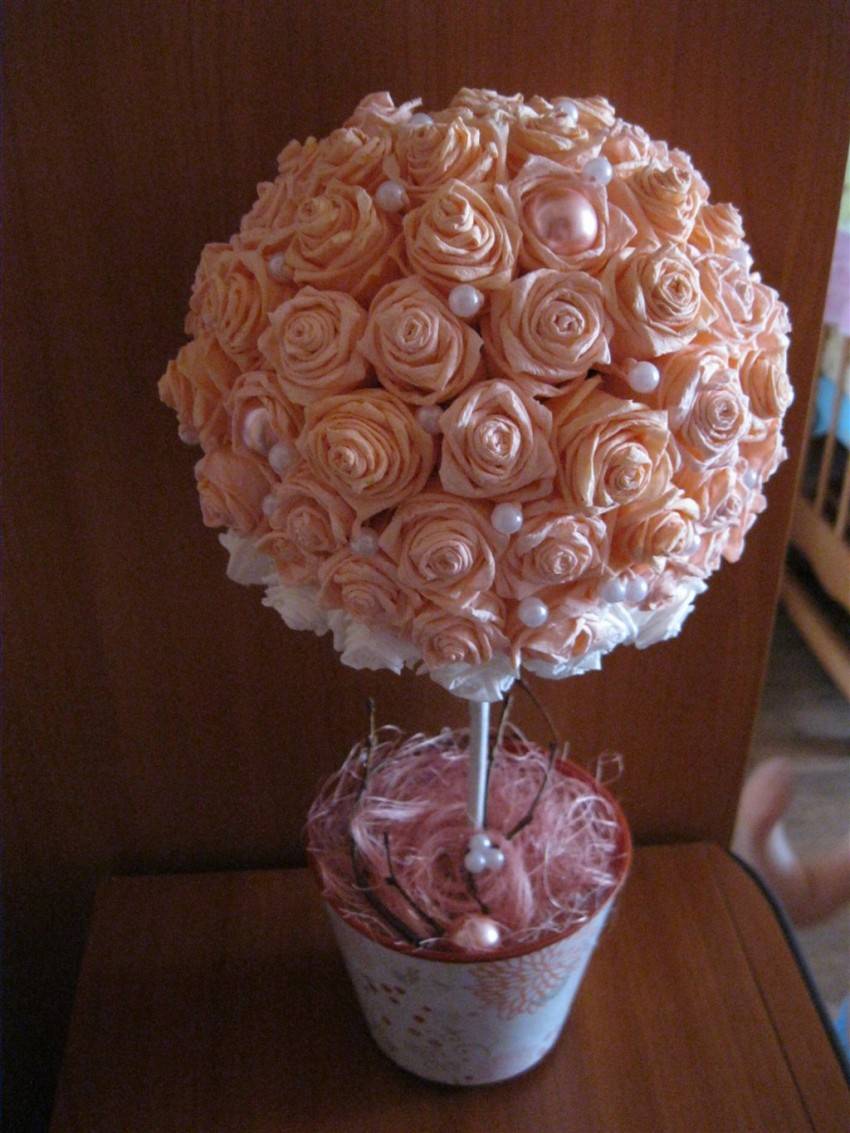 Свадебный топиарий из органзы методом торцевания. Мастер-класс с пошаговыми фото