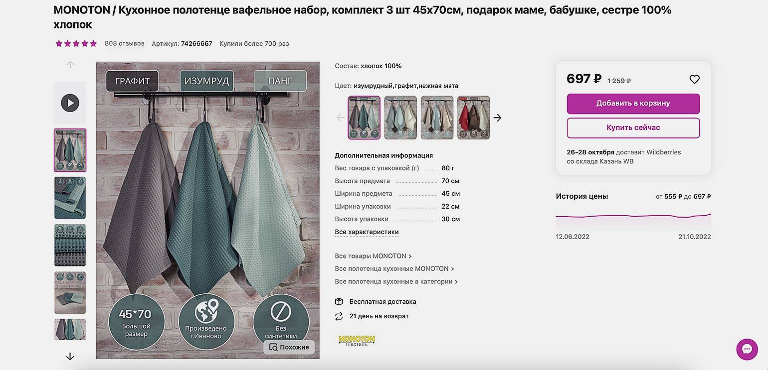 Вафельные полотенца приятных цветовСкриншот: сайт Wildberries / Skillbox Media