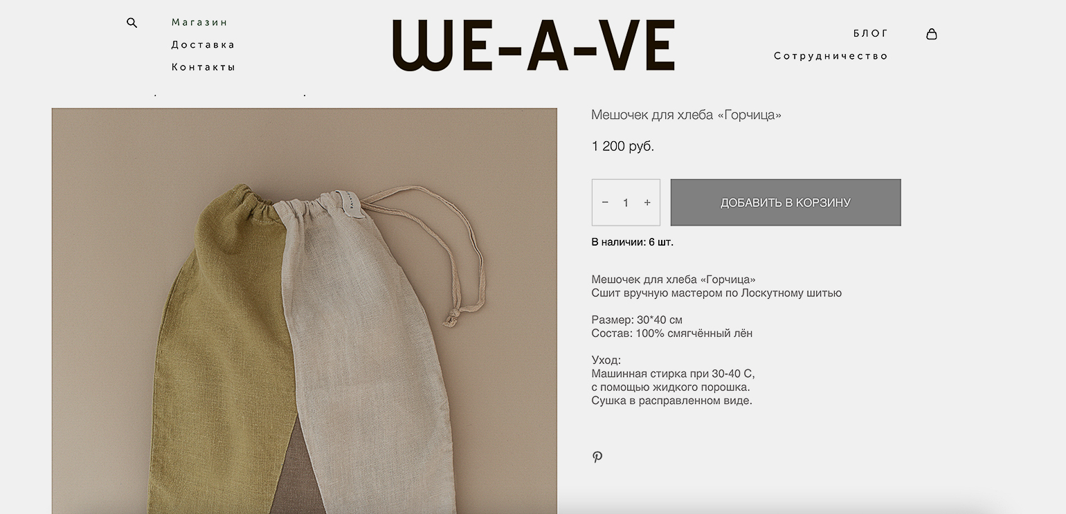 Льняной мешок для хлеба, чтобы он дольше оставался мягкимСкриншот: сайт We-a-ve / Skillbox Media