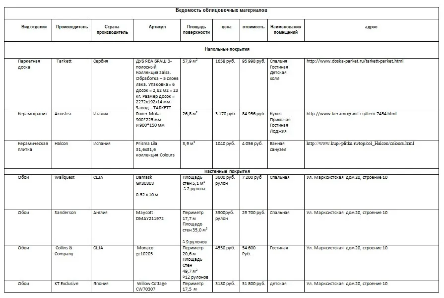 Ведомость отделочных материалов с расчетом их точного количества и стоимости поможет не выйти за рамки бюджета и подобрать облицовку, которая позволит максимально точно реализовать дизайн-проект. Специалисты «ЕвроДома» не просто подберут подходящую облицовку для каждого помещения трехкомнатной квартиры, но и найдут поставщиков необходимых облицовочных материалов в столичном регионе.