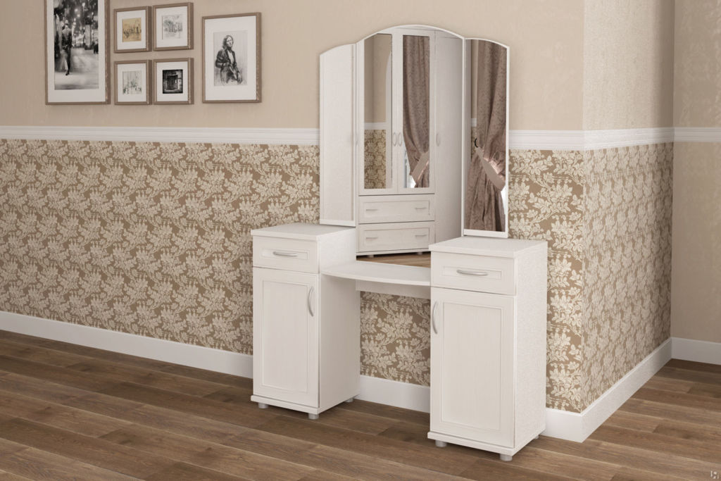 Многие предпочитают устанавливать небольшое трюмо в прихожей, или встраивать компактный туалетный столик в ванной комнате. Но классический вариант – именно спальня. Здесь необходимо в первую очередь определиться с выбором модели.