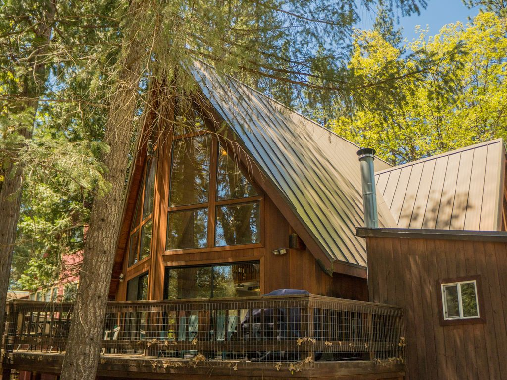 В освещении большую роль играют окна. В подобный дом можно заказать панорамные в виде треугольника. На самой кровле допустимо установить несколько витражных окон. В этом случае все внутренне пространство будет получать естественное освещение. Подобные варианты можно увидеть на большинстве фотографий А-образных домов.