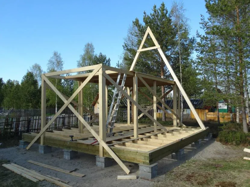 Первая пара стропильных ног на местеИсточник pinimg.com