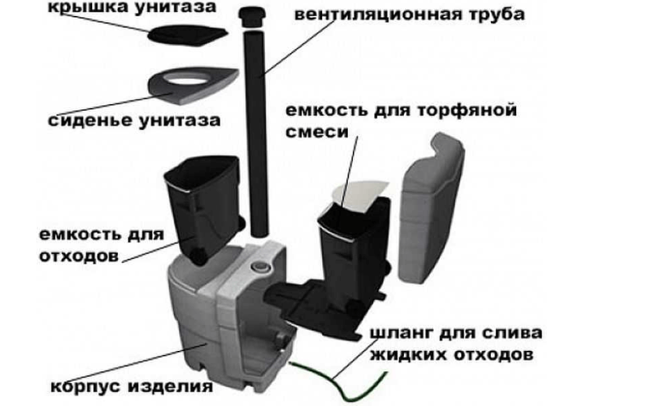 Вполне возможно изготовить торфяной туалет своими руками. Вот схема конструкции: