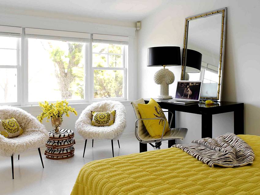 Небольшая модель с зеркалом и удобным креслом, вместо одной из прикроватных тумбочек, позволит сохранить полезную площадь и сделать комнату более функциональной.