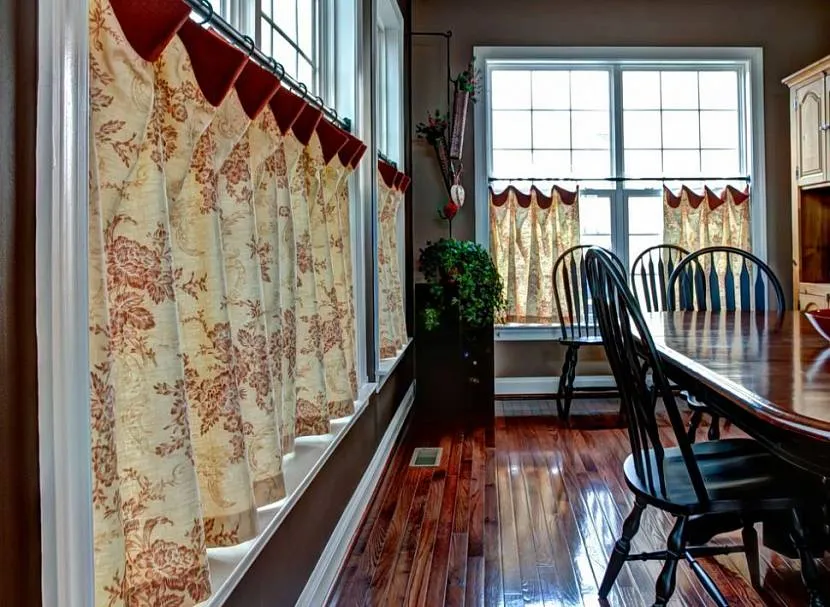 Шторы-кафе подходят для простого деревенского стиля. Они помогают создать ощущение тепла и уюта, напоминая атмосферу простого и уютного кафе.