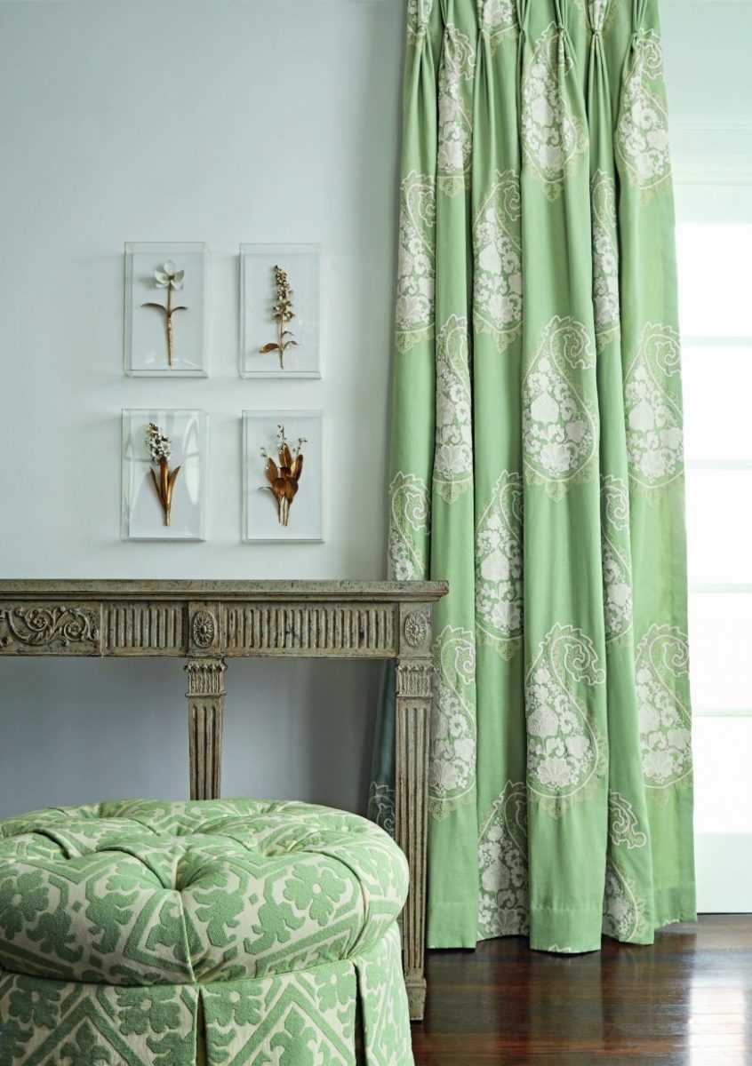 Цвет белый, кремовый, лавандовый, салатовый. Гардины однотонные или с растительным орнаментом.