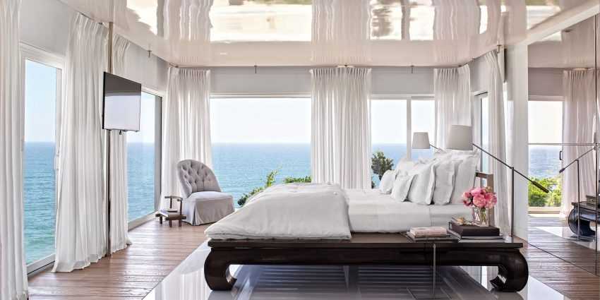Окно спальни в стиле минимализм оформляется просто и без излишеств. Это могут быть простые однотонные занавески, тюль или римские шторы. Все, в том числе и цвета, очень сдержанные и скромные. Чем меньше различных аксессуаров, тем лучше.