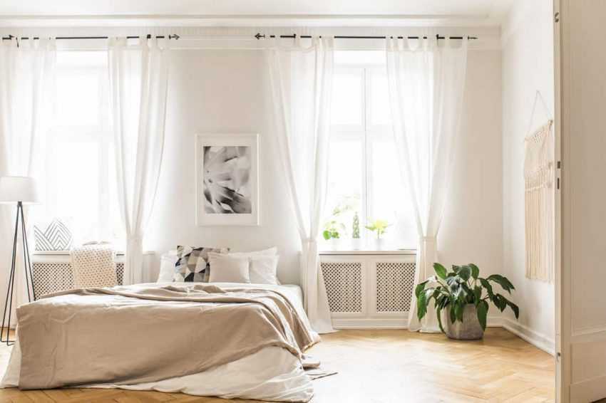 Белый тюль в спальню это практически беспроигрышный вариант. Единственный случай, где он может быть неуместен – абсолютно белая комната. Если вся мебель и стены спальни выкрашены в белый цвет, то вместе с белым тюлем комната превратиться в подобие больничной палаты.