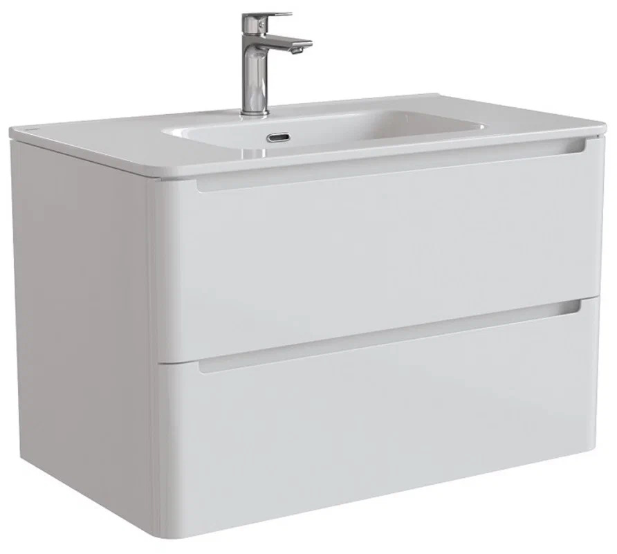 Минималистичная, компактная, с плоской раковиной и мягкими линиями корпуса. Создаст в ванной ощущение визуально лёгкого пространства. Крепления рассчитаны на большой вес и равномерное распределение нагрузки. Фурнитура предполагает более 10 лет эксплуатации. Два выдвижных ящика: в верхнем располагается ограничитель под сифон, в нижнем — вкладной организатор.