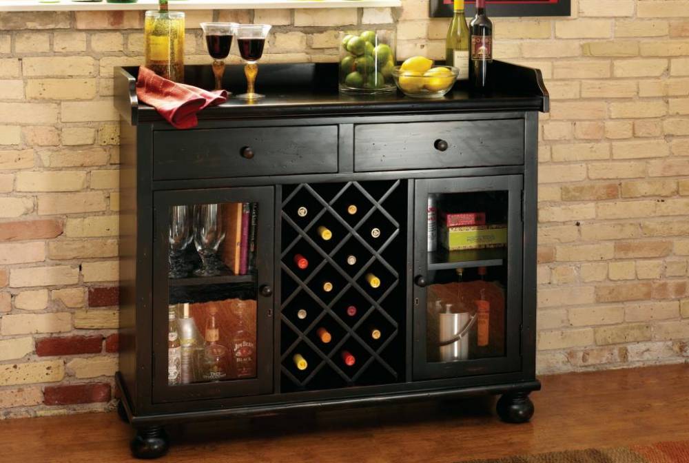 Иногда в квартире можно встретить тумбу-бар . Бутылки расставляются на полках за дверцей либо складываются в специальные ячейки.