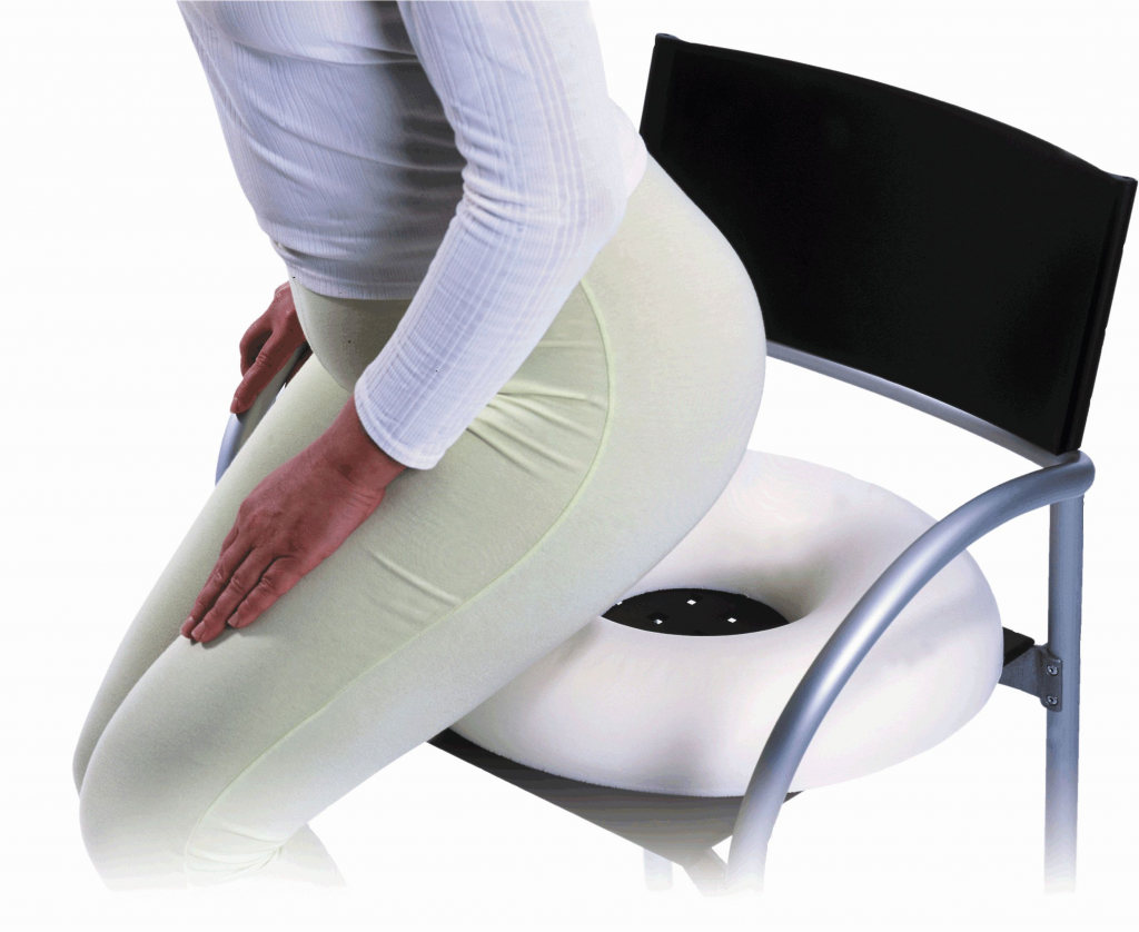 Это самая распространенная форма. Например, нередко встречается ортопедическая подушка-кольцо для сидения на стуле. При ее применении происходит равномерное распределение тела по всему периметру, а на нижнюю часть тела не оказывается совершенно никакой нагрузки. Данный вид изделий крайне удобен при ряде показаний:
