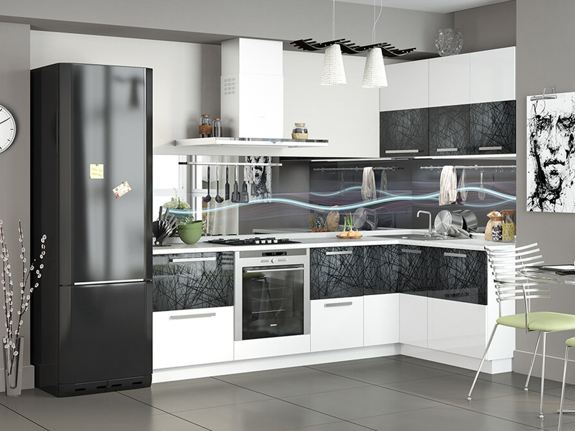 В современных гарнитурах также могут использоваться металл, пластик и закаленное стекло. Их применяют для изготовления фасадов. Именно сочетание нескольких материалов позволяет создавать интересные и оригинальные варианты кухонной мебели. Такой гарнитур может быть выполнен на заказ или же его можно приобрести в крупном гипермаркете, например, «Хофф» или «Икеа».