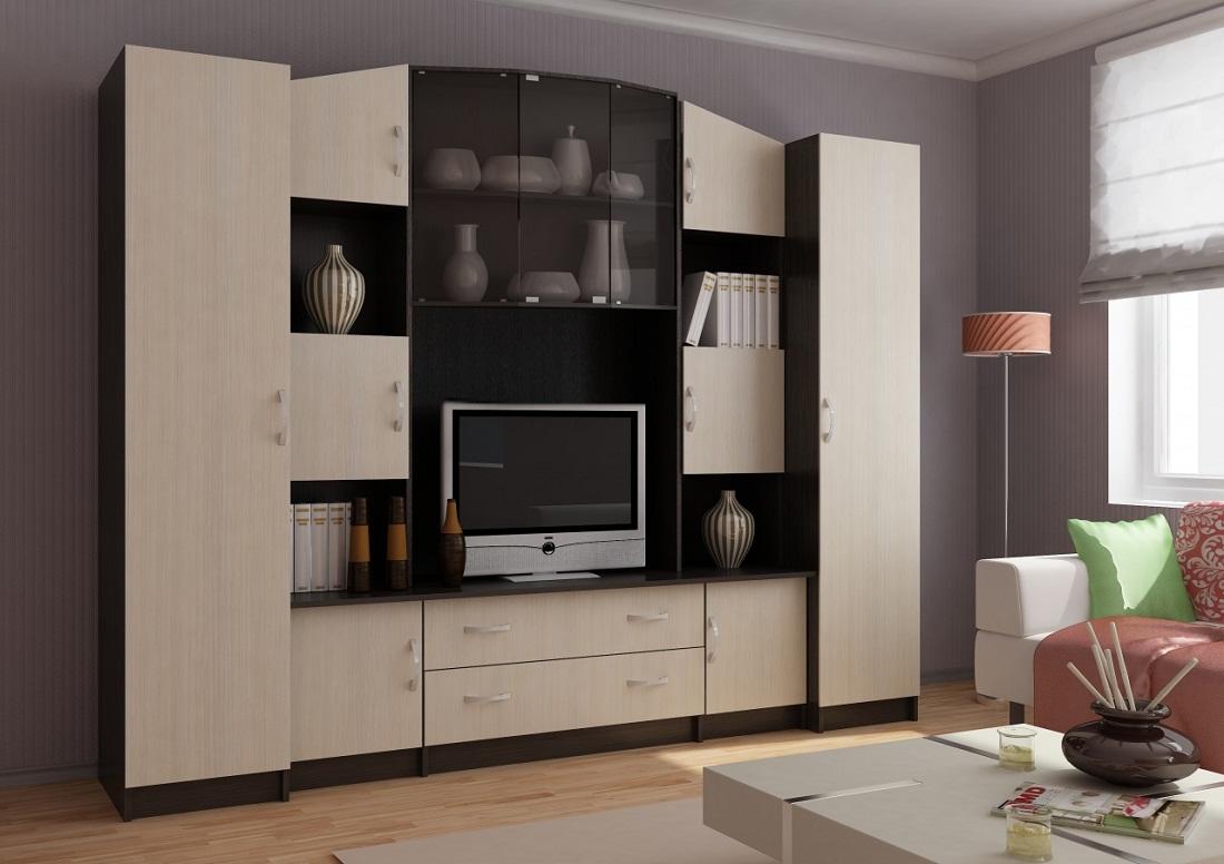 Оформление стенки во многом зависит от личных предпочтений. Но не стоит забывать об общей обстановке. Иначе шкаф неподходящего цвета может нарушить общую картину гостиной.